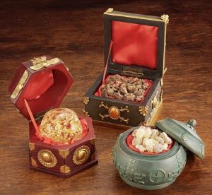 GIFT BOXES Each box comes individually boxed in these attractive gift boxes. The boxes are gold foil stamped with the silhouette of the Three Kings following the Christmas Star. The gift boxes are packed with burgundy tissue to protect the displays and add a richness to the packaging. Finally, the boxes are sealed to protect the contents and individually marked as "Gold", "Frankincense", or "Myrrh."ADDITIONAL SHIPPING MAY BE REQUIRED - INTERNATIONAL SHIPPING MAY BE EXTRA