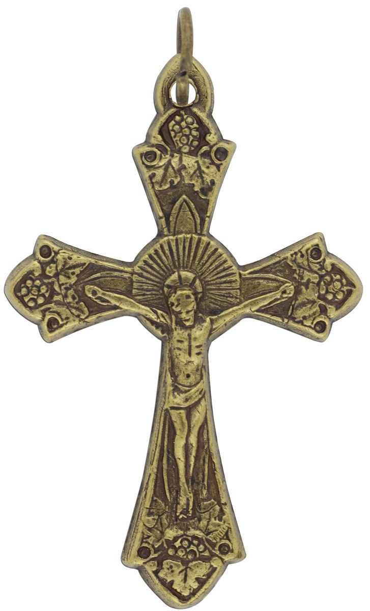 Grapes and Vine Crucifix -1 1/2 inch Bronze (Minimum quantity purchase is 1)