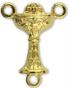 Just in from Italy, this larger detailed version of our best-selling CE1155 measures just over 7/8 inch in overall height. It is oval shaped, with the same detail on each side, measuring a full 5/16 inch thick at the top of the chalice. The chalice is further detailed with wheat at the base, grapes on the bowl, and the Holy Eucharist at the top with JHS and the cross. Made in Italy and silver oxidized, the wonderful dimensional silver finish that adds depth and detail to each piece, as perfected only by the Italians.