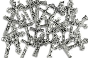 Our collection of rosary crucifixes are among some of the top rosary parts and rosary making supplies in the world. Made in Italy, these crucifixes for rosary making are durable, detailed, and affordable for bulk rosary making supplies. We offer silver crucifixes, gold crucifixes, bronze crucifixes, gunmetal crucifixes, wood crucifixes, metal crucifixes, colored enamel crucifixes, and more! If you are looking for an inexpensive but high quality silver crucifix pendant, you have come to the right place. We carry Sacramental medal crucifixes such as a Saint Benedict Crucifix, Miraculous Medal Crucifix, Pardon Crucifix (Catholic Indulgence Crucifix), among other popular, unique designs like our Leaf Sunburst Crucifix, Celtic Crucifix, Crown of Thorns Crucifix, Nail Crucifix, Pope Francis Cross, Papal Crucifix, and more. These designs range from 1.5 inch crucifixes, 2" crucifixes, or large crucifixes on this page. These discount Catholic products make it easy to buy a wide range of items for your needs at wholesale pricing: rosary components, a rosary crucifix, Italian crucifix, crucifix pendant for necklaces, silver crucifix pendants, pardon cross, rosary crucifix bulk and more!