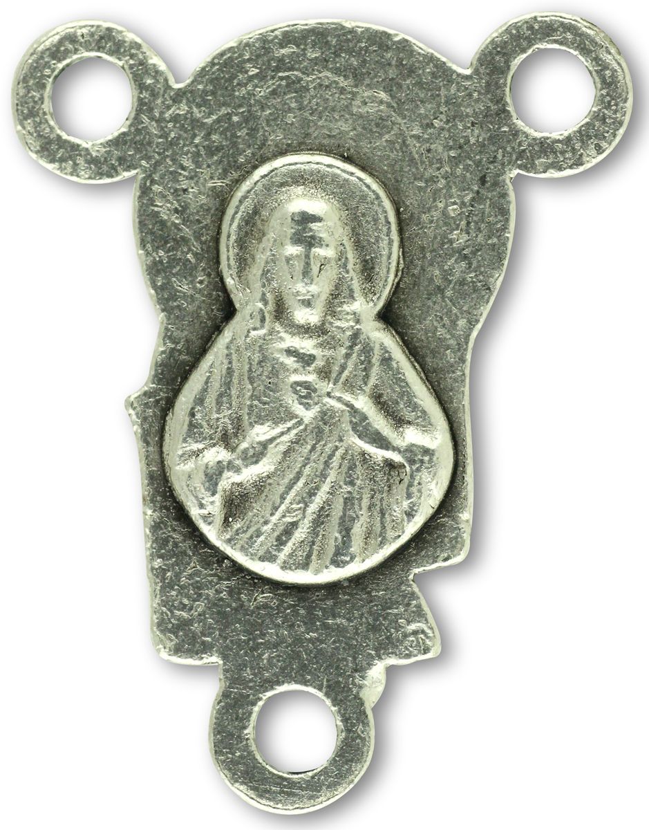 < >This rosary center piece features an image of Madonna and Child on the front and an image of the Sacred Heart of Jesus on the back. Made in Italy and silver oxidized. 1.6 x 1.24 cm, 0.4 cm thick.