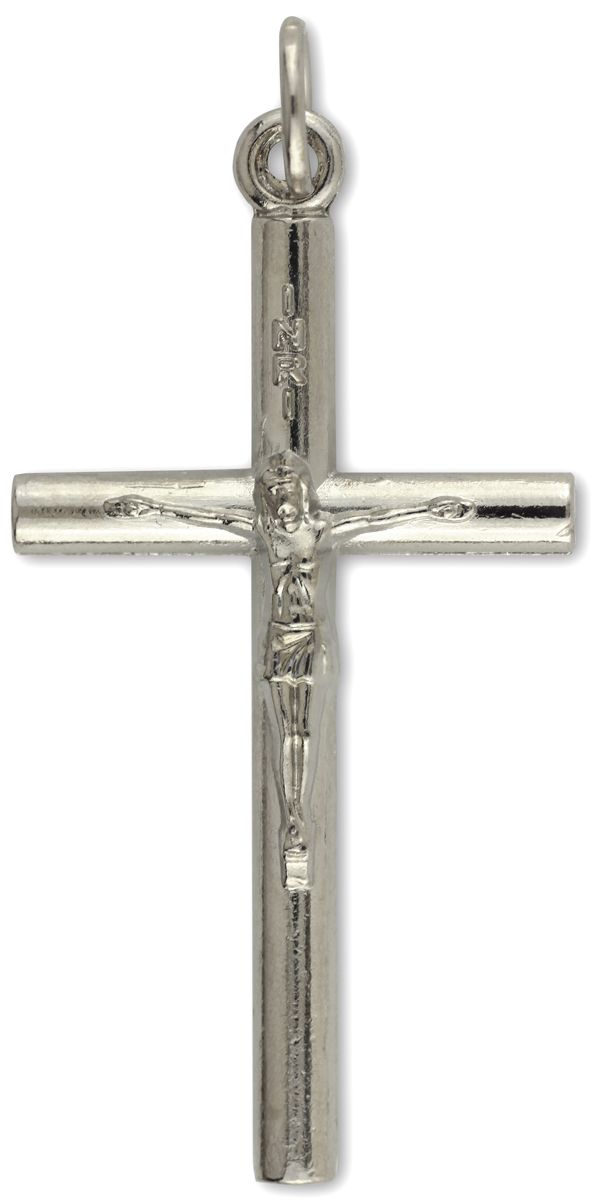 These 1-1/2 inch (3.8 cm)mission rosary crucifixes have a standard metal finish ( NOT oxidized silver finish). These quality parts are made in Italy,and are great for making many rosaries to donate to missions.