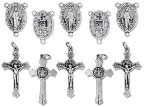 Need bulk quantities of medals, crucifixes, rosary centers, beads and similar items at great wholesale prices? Look no further - here you will find the best deals on the internet with bulk prices for rosary parts, religious medals, and other religious articles. The more you buy, the better the price! Need even larger quantities, or have a custom need? Call our friendly staff in Tennessee at 615-230-2095 and we will be happy to assist!
