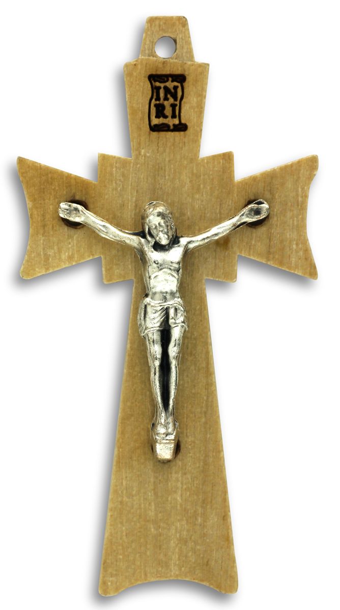 This beautiful Natural looking Olive wood crucifix features a silver corpus and is a perfect color match for our olive wood rosary center (CE1630). It is approximately 1 3/4in (4.5cm) tall and is made in Italy. Perfect for making olive wood rosaries.