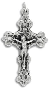 This beautiful Fleur-de-Lis crucifix features an ornate design and large size with wide crossbars. This crucifix is die-cast and made of oxidized silver. Made in Italy. Approximately 1 1/2 inches in height. Attached jump ring is included.