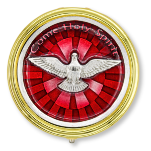 This beautiful handmade Italian Holy Communion pyx / rosary case features a detailed image of Our Lady of Grace, accented with an olive wood border and elegant blue enamel. Measuring approximately 6 cm across and 2 cm high, with an inside diameter of 4 cm and a plastic liner, it may be used to carry Holy Communion to the sick (only if approved by your priest) or as a case for a small rosary or jewelry. Please use the pyx for only one purpose to remain respectful of the Eucharist, as some churches do not allow plastic-lined pyxes; in those cases, it serves as a safe and meaningful holder for a rosary or small personal items.