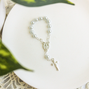 Wood single decade rosary features 8mm beads, and a 1" crucifix. Made in Portugal.