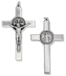 This high quality, two-sided St Benedict rosary crucifix is 2 inches in height. It is made in Italy, silver oxidized and accented with a beautiful sunburst at the center of the cross. The medal serves as protection against evil and temptation, secures a timely and healthy birth for children as well as protection against body afflictions and contagious diseases. St Benedict is the patron saint of Kidney disease and schoolchildren. This crucifix is also known as the cross of a Happy Death. An inspirational crucifix for most any use. Silver oxidized with the finest finish in the world, as only the Italians can do.