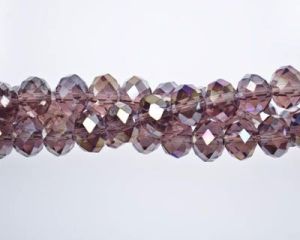 These great glass crystal beads are perfect for rosaries! The smaller dimension is in the hole direction and the wider dimension is across, giving a large 8mm bead grip while praying without having the longer overall length for the rosary normally associated with most other beads. Vibrant in clarity, color and sparkle, these quality iridescent beads are sold in 16 inch strands - approximately 60 beads per strand - enough to make one rosary or 5 rosary bracelets.
