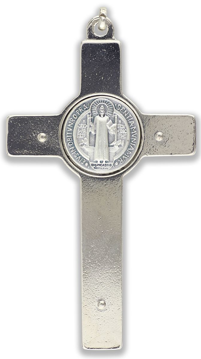 This St Benedict two-sided crucifix is beautifully designed with black enamel and a silver oxidized finish. The medal serves as protection against evil and temptation as well as protection against body afflictions and contagious diseases. It measures 3-1/8" tall and is made in Italy.